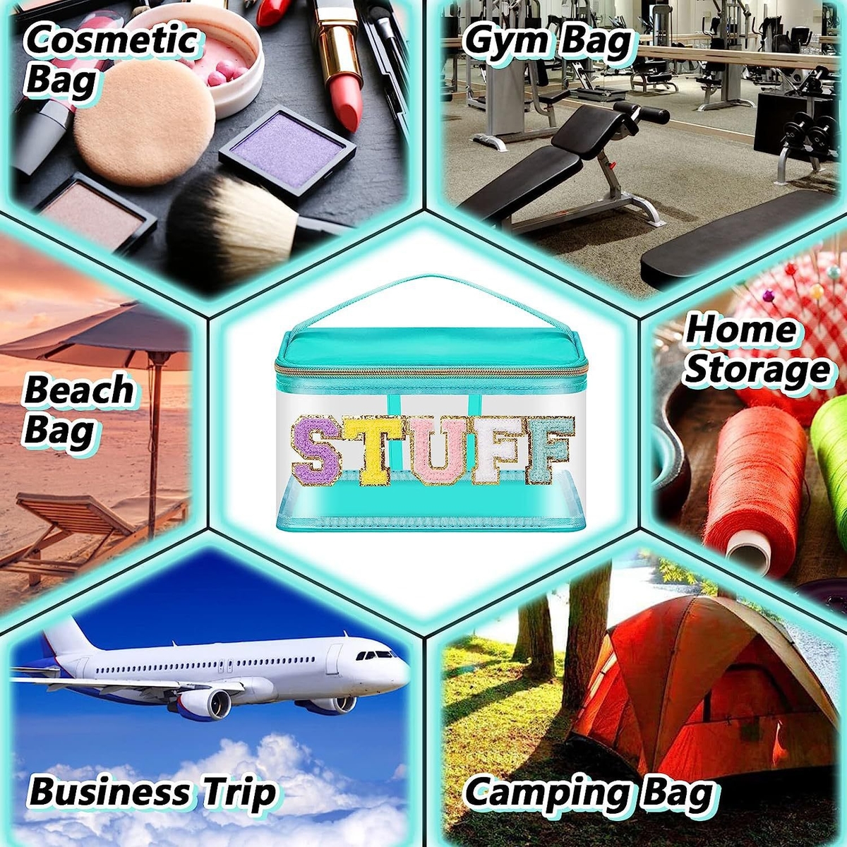 Chenille embroidery alphabet makeup bag Transparent waterproof PVC portable storage bag